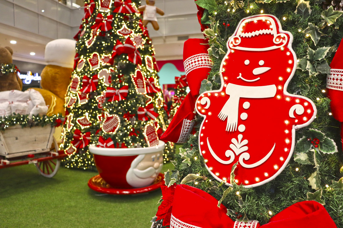 Com o tema “Fábrica de Biscoitos”, a decoração traz cenários encantadores, com duas grandiosas árvores de Natal, além de brinquedos como carrinhos sobre trilhos, carrossel, escorregador, balanço, entre outros.